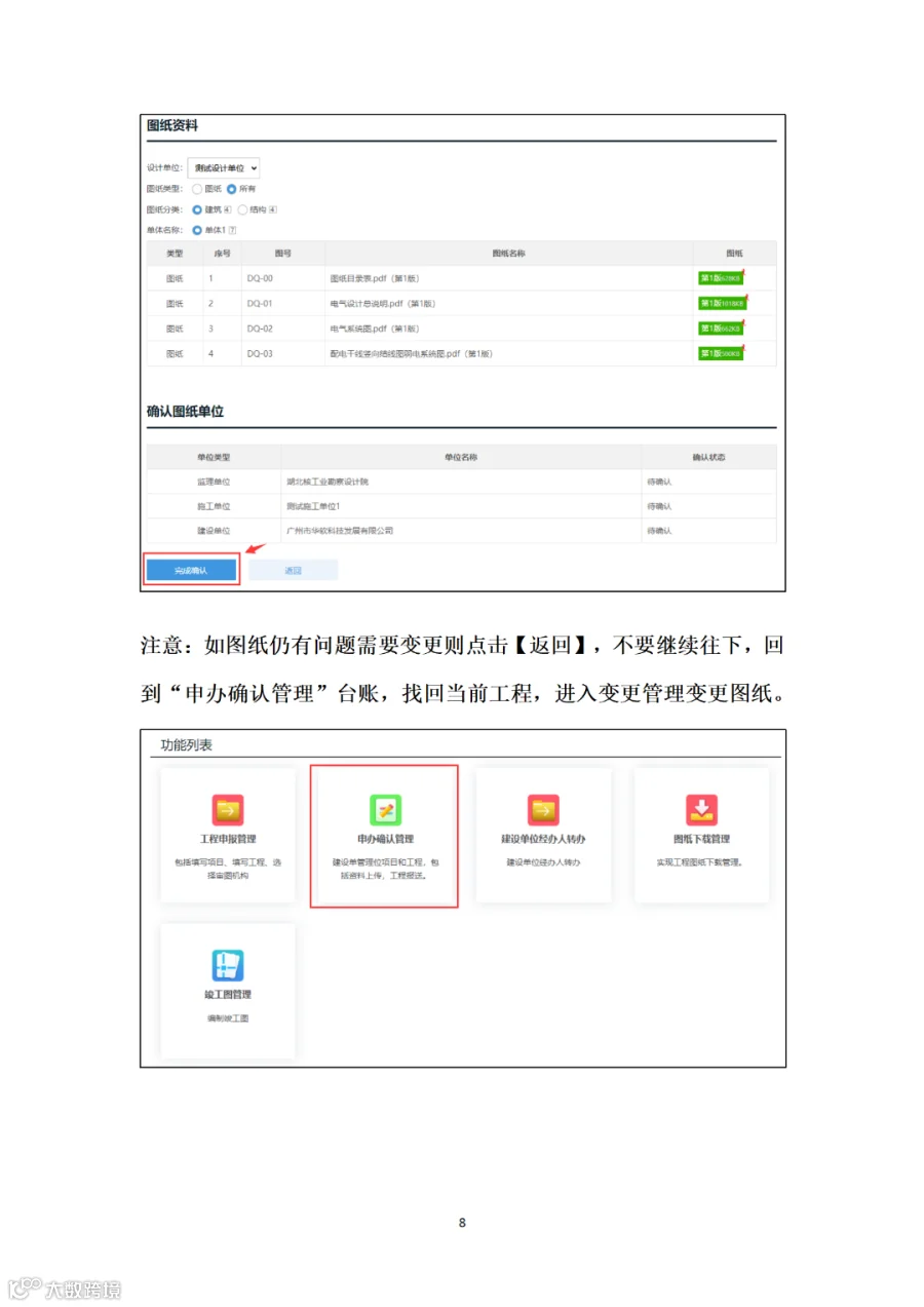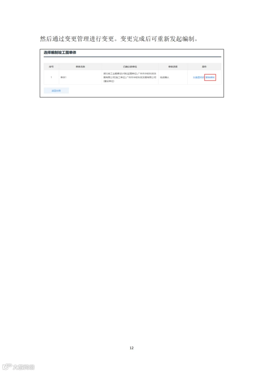 建设单位组织施工、监理单位在“广东省施工图设计文件审查管理系统”的“竣工图管理”栏目确认施工图设计单位、工程变更等信息,确认核实后,各单位线上加盖竣工专用章,完成竣工图编制,无需另行编制纸质竣工图纸。