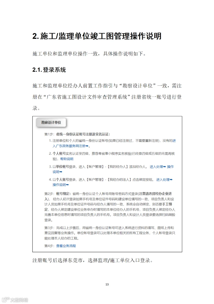 (一)施工图阶段。勘察设计单位通过“广东省施工图设计文件审查管理系统”上传施工图设计文件,施工图审查机构审查通过后,电子图纸供建设过程监督环节使用,审查结果供施工许可、消防等行政审批业务使用。