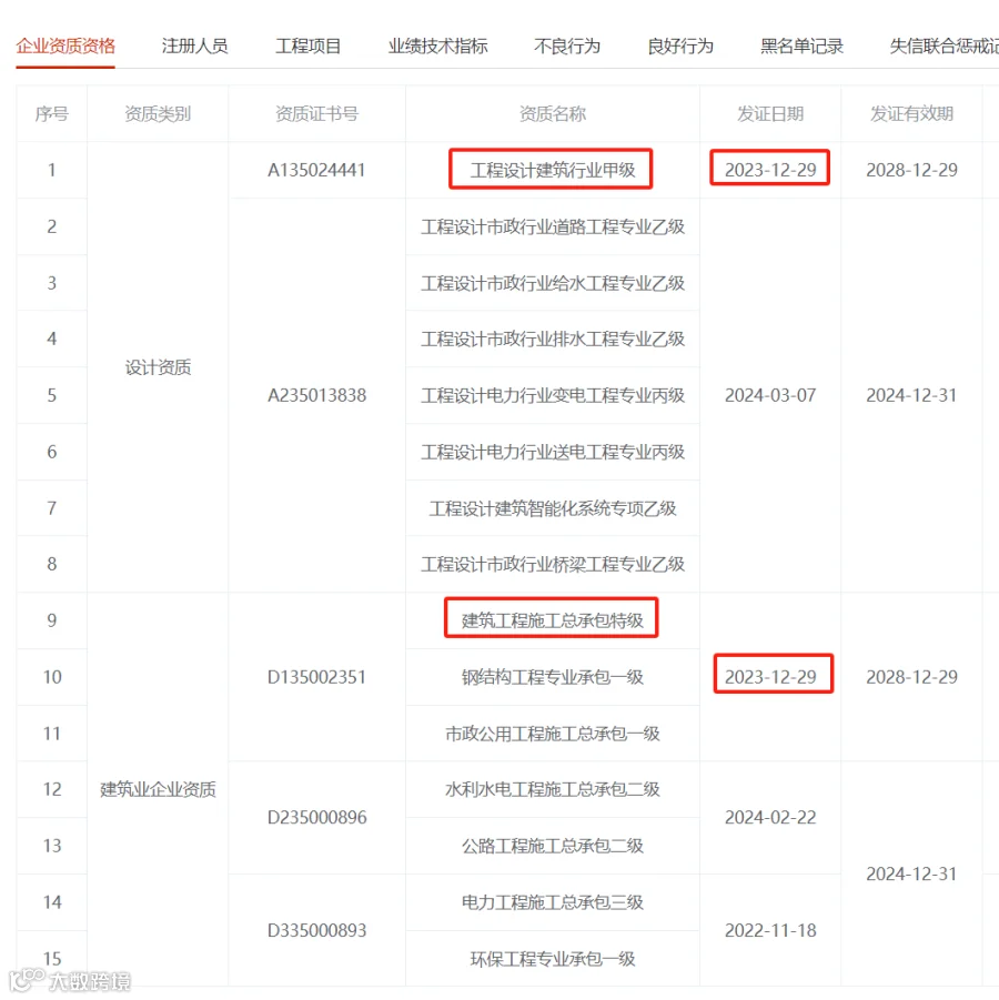 通过“四库一平台”显示,这两项被撤销的资质为去年年底取得。
