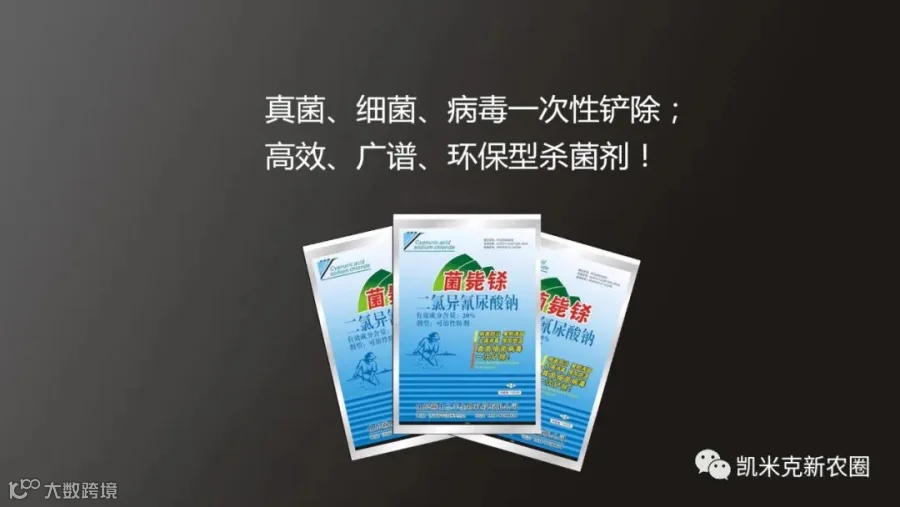 菌毙铩为白色粉末状或颗粒状的固体,是氧化性杀菌剂中杀菌中广谱、高水平、低毒、中等刺激性的消毒剂,也是氯代异氰尿酸类中的主导产品。可杀灭细菌芽孢、细菌繁殖体、真菌等多种致病性微生物,它是一种最新的环保型广谱杀菌剂。对循环水系统的硫酸还原菌、铁细菌、真菌等有杀灭作用。
