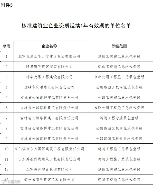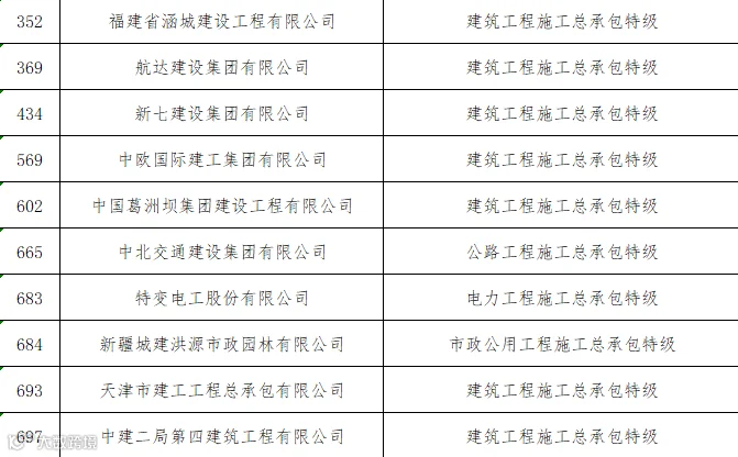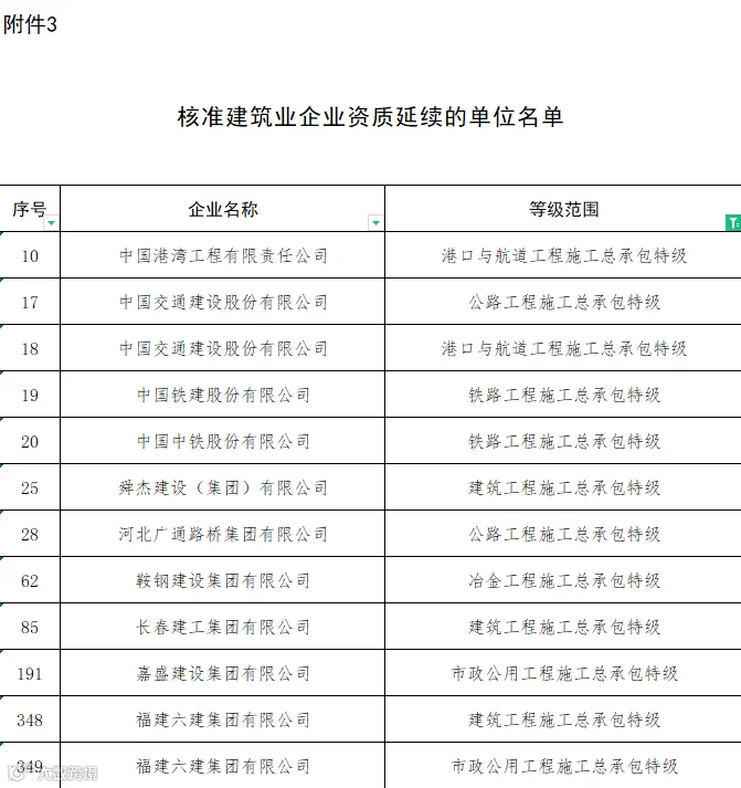 在此仅展示22家特级企业名单以及30家建筑企业资质延续1年有效期名单(其余名单可下滑下载)↓