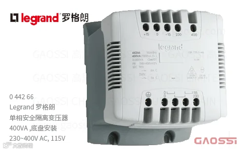 高思(GAOSSI®)专业供应法国罗格朗(Legrand)品牌控制与信号变压器(control, signalling and safety isolation transformers open type single phase)0442系列044266(400VA, 230~400V ac输入,115V输出)等产品,应用在汽车、光伏、机床、冲床/压力机、车辆、钢铁、建筑、机械设备、电气设备、电子、通讯、医疗器械等行业。