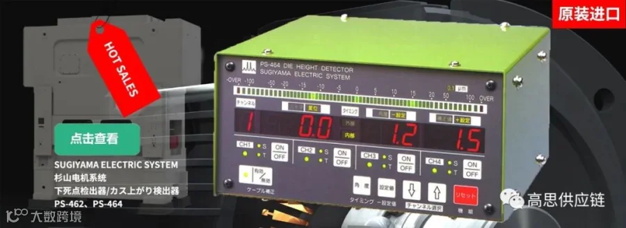 杉山电机系统(SUGIYAMA ELECTRIC SYSTEM)跳屑检测装置/下死点检出器(下死点検出器,Bottom dead center detector/Dei Height Detector)PS-462、PS-464系列PS462TC-25M5、PS464TC-14M5等产品,PS-464/462在冲压领域用于检测浮料、叠打等异常,广泛应用在压力机/冲床领域。