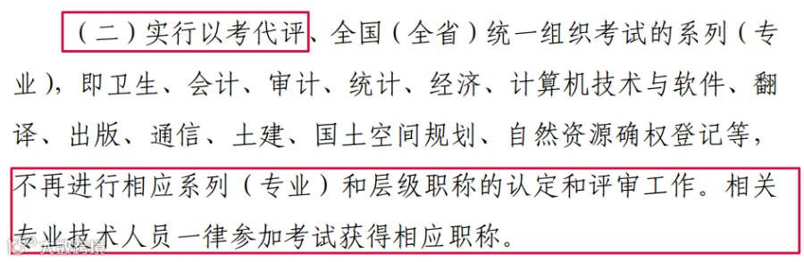 初中级全部实行以考代评,考试通过视同具备相应的专业技术任职资格。