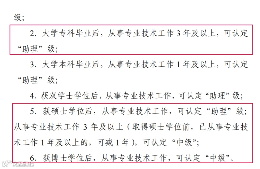 硕士学位,直接认定助理级,从事专业技术工作3年后认定中级,如果取得硕士学位前已工作1年以上的,减免1年;