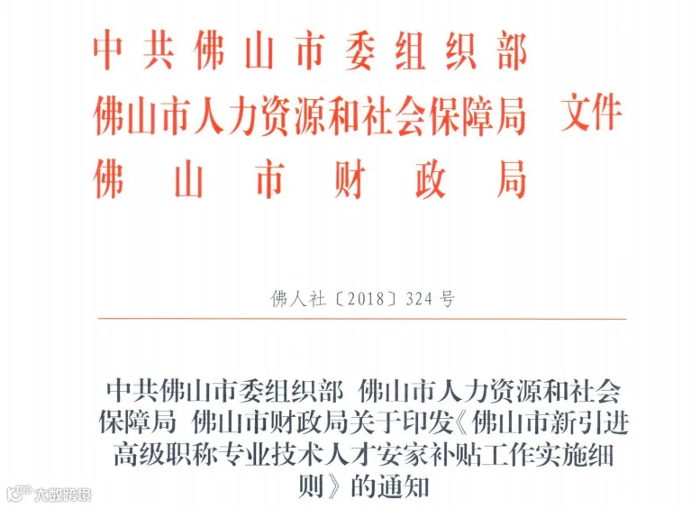 佛山:正高级职称专业技术人才每人给予30万元安家补贴