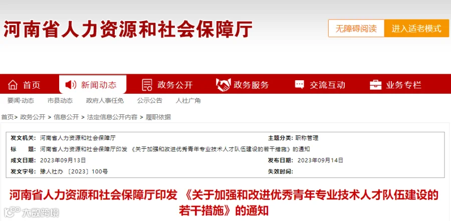 近期,河南省人社厅印发 《关于加强和改进优秀青年专业技术人才队伍建设的若干措施》。