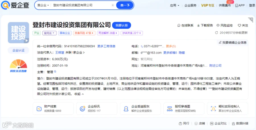 登封市建设投资集团有限公司(国有企业)成立于2007年01月19日,注册地位于河南省郑州市登封市中岳街道中禾商务广场A座18楼1803室,法定代表人为王晓慧。经营范围包括对城市拆迁、安置房的投资建设、土地开发、商业地块运作和基础设施的投资建设、管理、运行;园林绿化工程施工维护;市政公共事业设施建设、管理、运行;旅游项目的开发与经营,建材销售(以上范围法律法规规定需经审批方可经营的;未审批前,不得经营)***登封市建设投资集团有限公司对外投资31家公司。