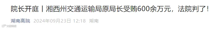 9月23日,湘西厚驿交通建设投资有限责任公司董事长吴奕华被判处有期徒刑十年六个月;