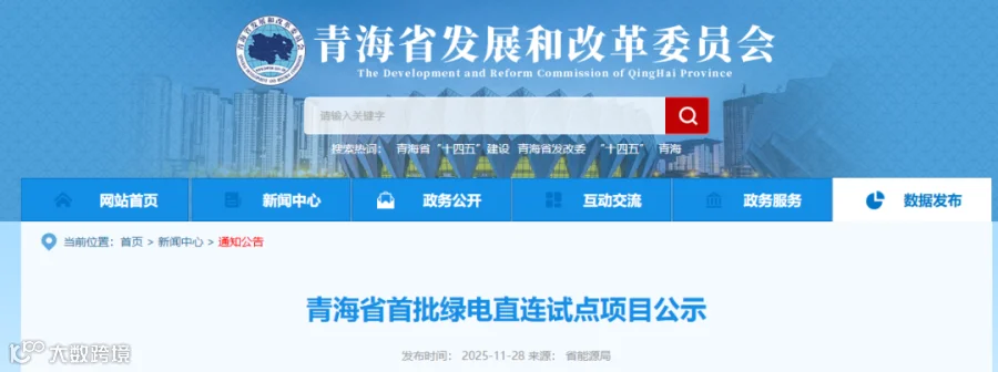 11月28日,青海省发展和改革委员会发布青海省首批绿电直连试点项目公示。青海省能源局组织第三方机构会同相关部门和电网企业,对各地申报的绿电直连试点项目进行了联合评审评估,共7个项目拟纳入首批试点项目清单,电源规模合计223.793万千瓦。