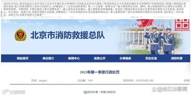 据长江云新闻,记者在北京市消防救援支队官网上公示的《2023年第一季度行政处罚》中看到,2023年3月15日,涉事公司北京同兴公司就因为消防安全问题被消防队进行过行政处罚——在建设工程内设置宿舍;未进行内部防火检查。其中提到施工现场多处有烟头、施工现场存在吸烟现象,检查时了解到该单位未进行经常性的内部防火安全检查。