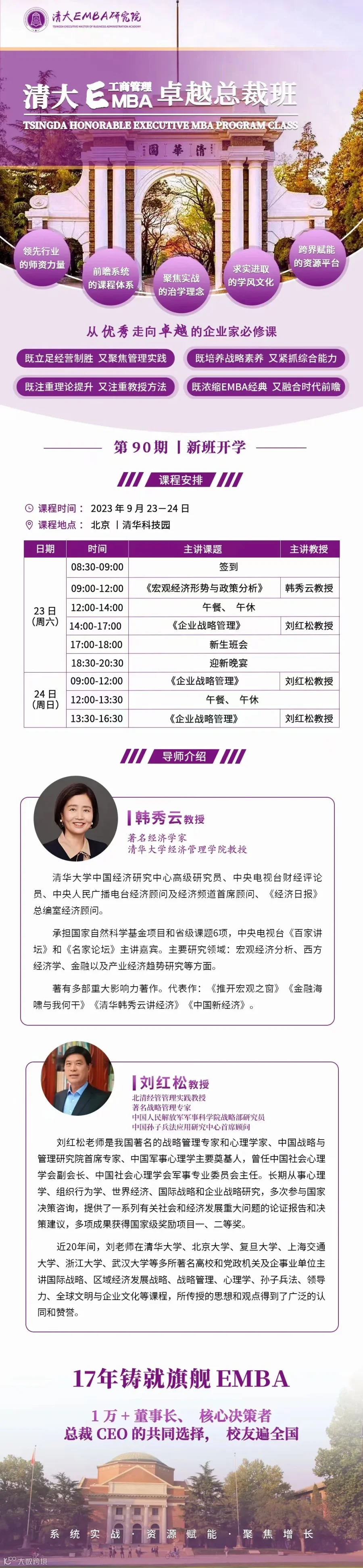 欢迎加入:清大·工商管理(EMBA)总裁高级研修班