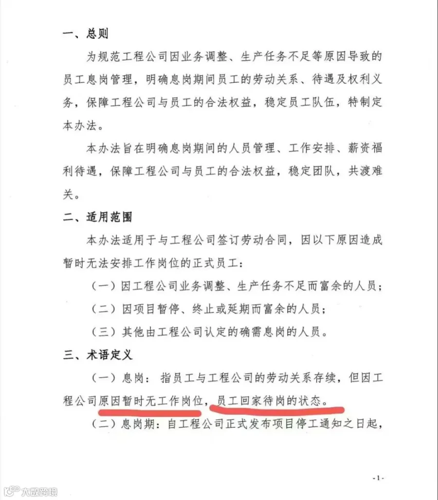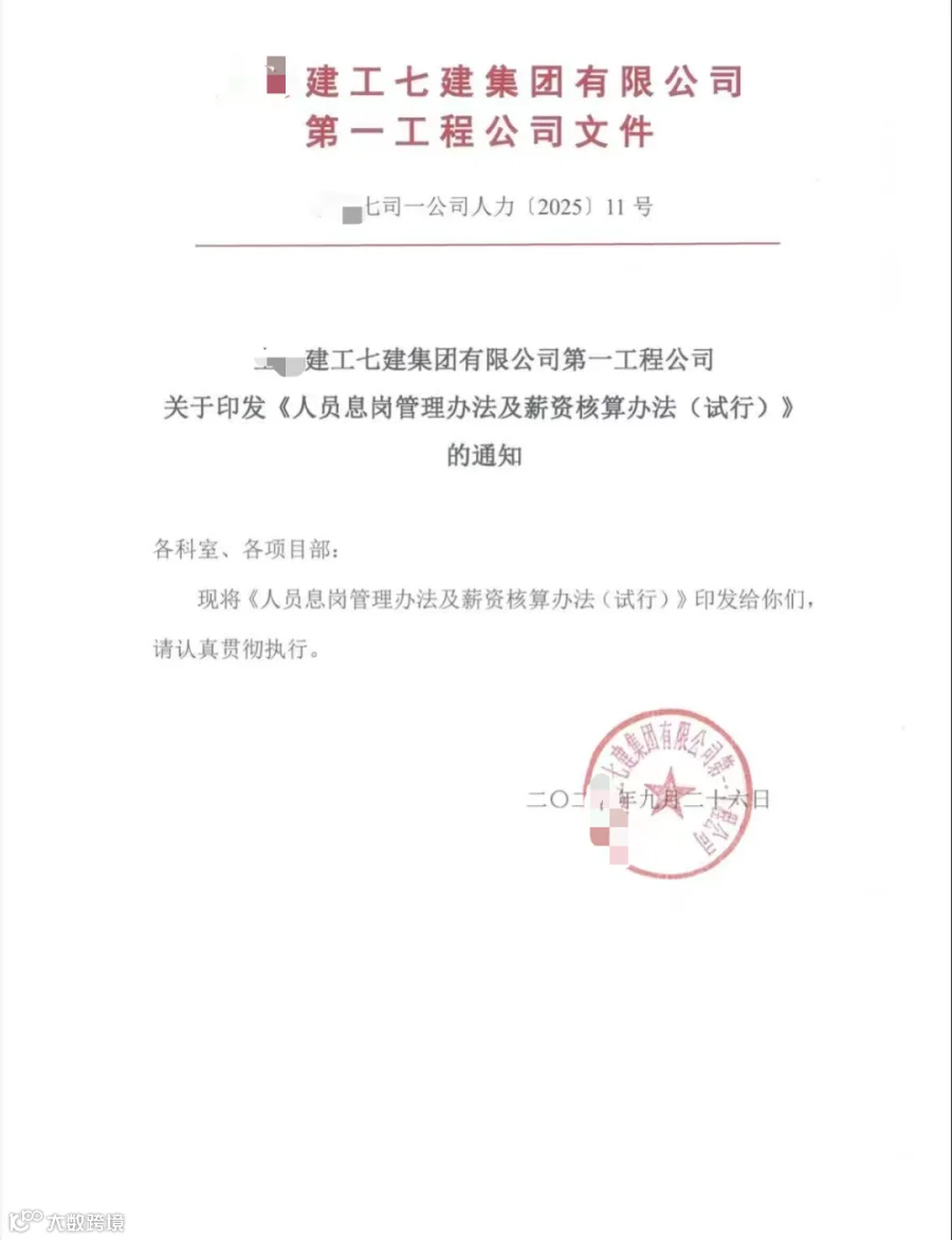 最近,上海某建工集团的《人员息岗管理办法》在工程圈炸了锅!