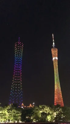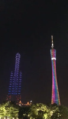 亿航相关负责人告诉记者,表演时,技术人员使用一台电脑就可以实现精准控制。无人机编队表演所用的所有无人机都是通过智能系统实时监控进行全自主飞行,与以往相比,这次采用了高精度的RTK-GPS载波相位差分技术,为每台无人机提供厘米级精准定位,并充分利用了高亮多彩动态感灯光效果,强化了造型的透视感和立体效果,从而呈现精彩的空中视觉盛宴。