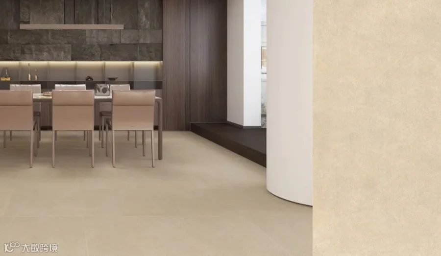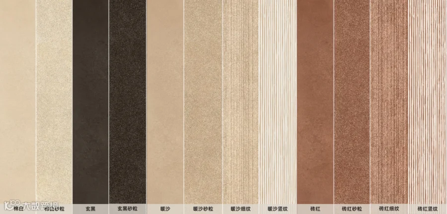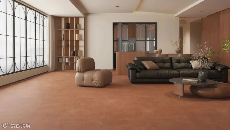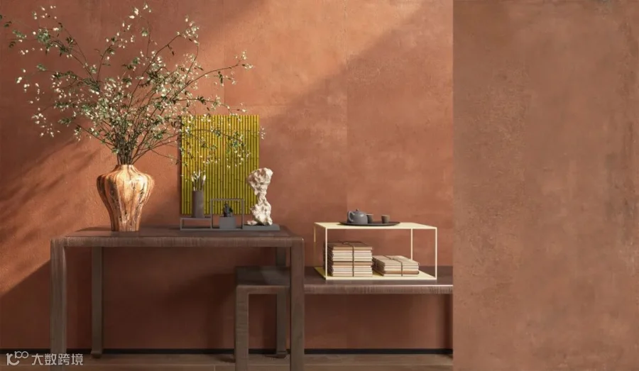 砖红砂粒的复古质感,如同夕阳映照下古砖瓦的尊贵红光,不仅是岁月镌刻的痕迹,更蕴含粘土与砂粒的独特韵味和张力,在空间中交织出一种既高贵典雅又充满时光韵味的美感。