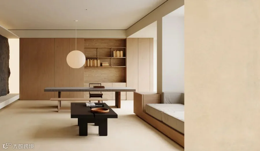 棉白还原粘土未经雕琢的原始肌理,将晨曦时分大地的柔白凝固于每一寸空间之中。暖调微光在颗粒间游走,让人置身于材料本身的纯净与质朴之美的独特体验。于素净中勾勒生活的本真轮廓,感受自然与家居和谐共生的空间氛围。