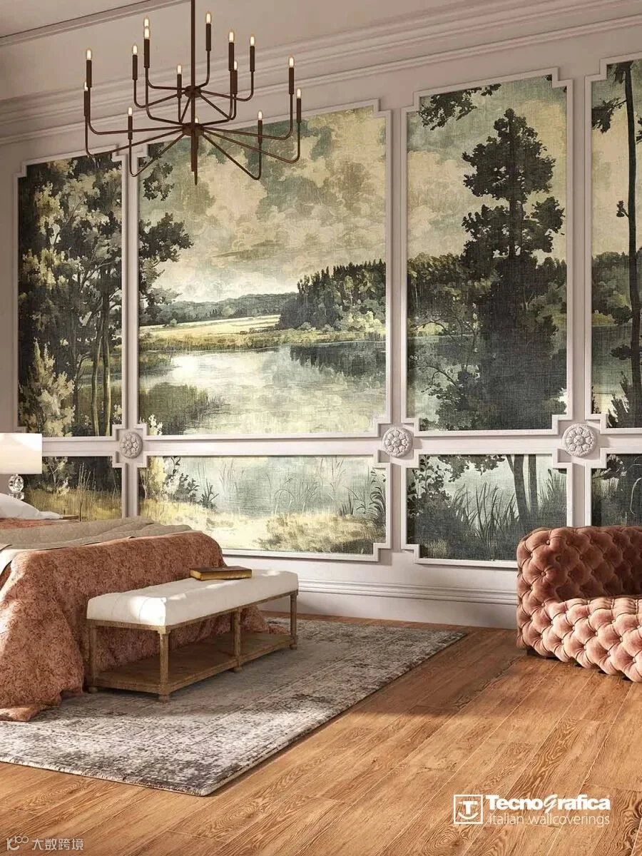 TECNOGRAFICA「GEOMETRIC PATTERNS·几何图案」主题墙纸从康定斯基的色彩情绪化表达与蒙德里安的几何秩序感中汲取灵感,通过色彩和形状的解构与重组,创造出具有当代性的设计语言,在视觉上营造出故事感和情感传递,每款花色都以不同的呈现方式塑造出风格各异的色彩世界,每款墙纸都散发着创造性张力与本身独特的生命韵律。