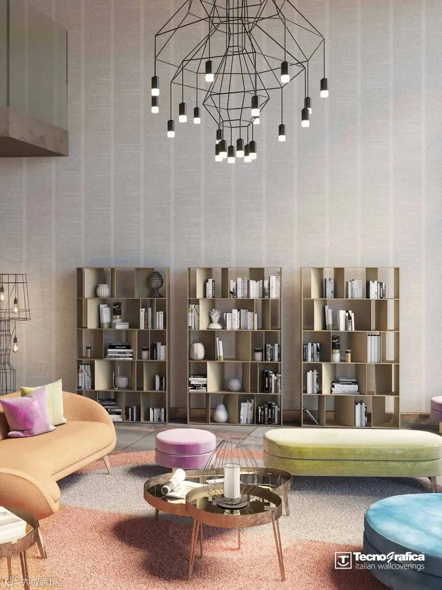 TECNOGRAFICA「GEOMETRIC PATTERNS·几何图案」主题墙纸从康定斯基的色彩情绪化表达与蒙德里安的几何秩序感中汲取灵感,通过色彩和形状的解构与重组,创造出具有当代性的设计语言,在视觉上营造出故事感和情感传递,每款花色都以不同的呈现方式塑造出风格各异的色彩世界,每款墙纸都散发着创造性张力与本身独特的生命韵律。