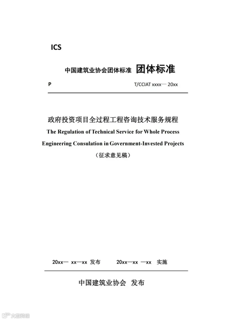 根据《中国建筑业协会团体标准管理办法》 (建协〔2020〕7 号)和中国建筑业协会《关于开展第五批团体标准编制工作的通知》(建协函〔2021〕59 号)的要求,在中国建筑业协会的组织下,由北京中建工程顾问有限公司、哈尔滨工业大学会 同有关单位共同编制的中国建筑业协会团体标准《政府投资项目全过程工程咨询技术服务规程》已完成征求意见稿(见附件1)。现上网公开征求意见,诚挚邀请各有关单位和专家提出具体的修改意见和建议。请填写征求意见表(见附件2),于 2024 年 5 月 10日前邮寄或发送电子版给主编单位。