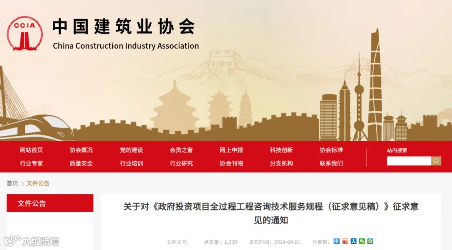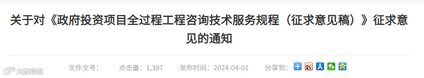 2024年4月,中建协发布《政府投资项目全过程工程咨询技术服务规程(征求意见稿)》,提出: