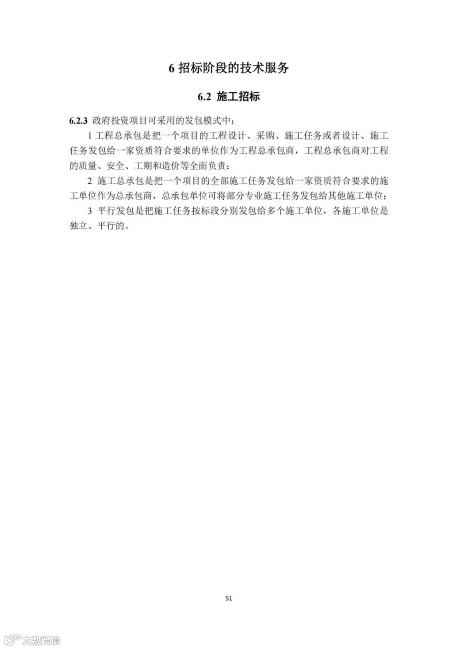 6.2.3 政府投资项目可采用如下发包模式:1 工程总承包;2 施工总承包;3 平行发包。