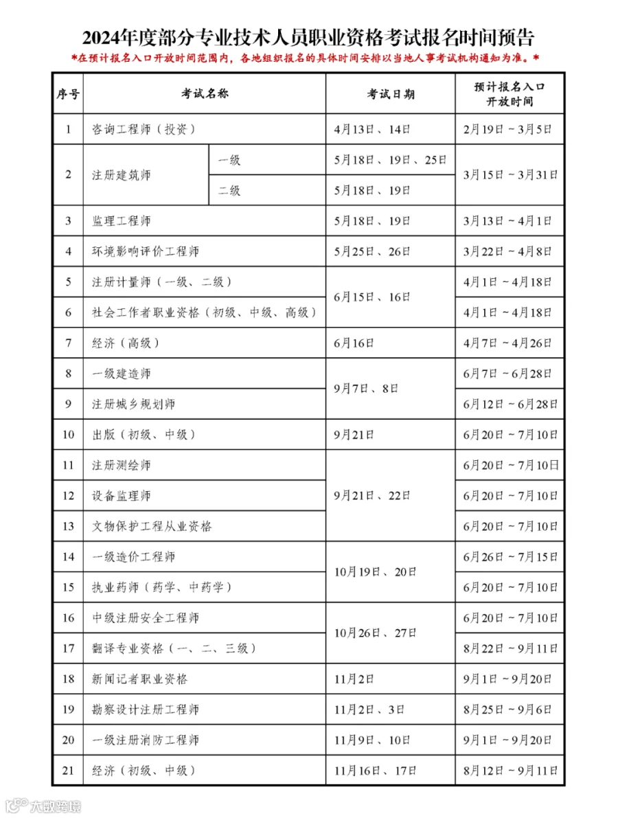 请准备在2024年报考相关职业资格考试的人员,提前做好资格考试报名服务平台注册、信息维护等事宜。