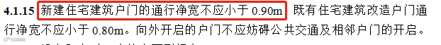 4.2.6 不同住户户门开启后不应相互影响,应保证至少有600mm的安全距离。户门开启不应影响公共部位的疏散。