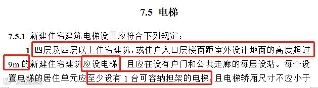 2022版提出了「入户层为二层及二层以上的住宅建筑,每单元应至少设置1台电梯」,2019版则要求的是四层及四层以上。