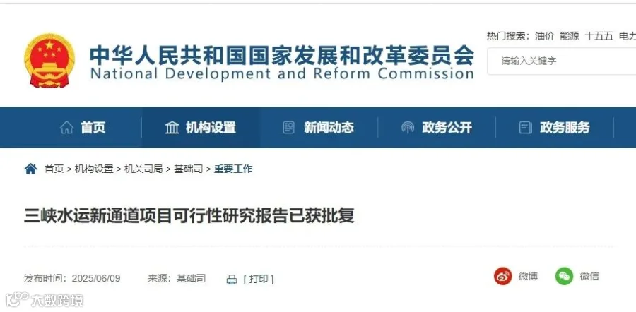 近日,国家发展改革委批复三峡水运新通道项目可行性研究报告。批复表示,该项目是三峡工程之后,长江干线最大综合性工程,可研阶段项目静态总投资约766亿元。