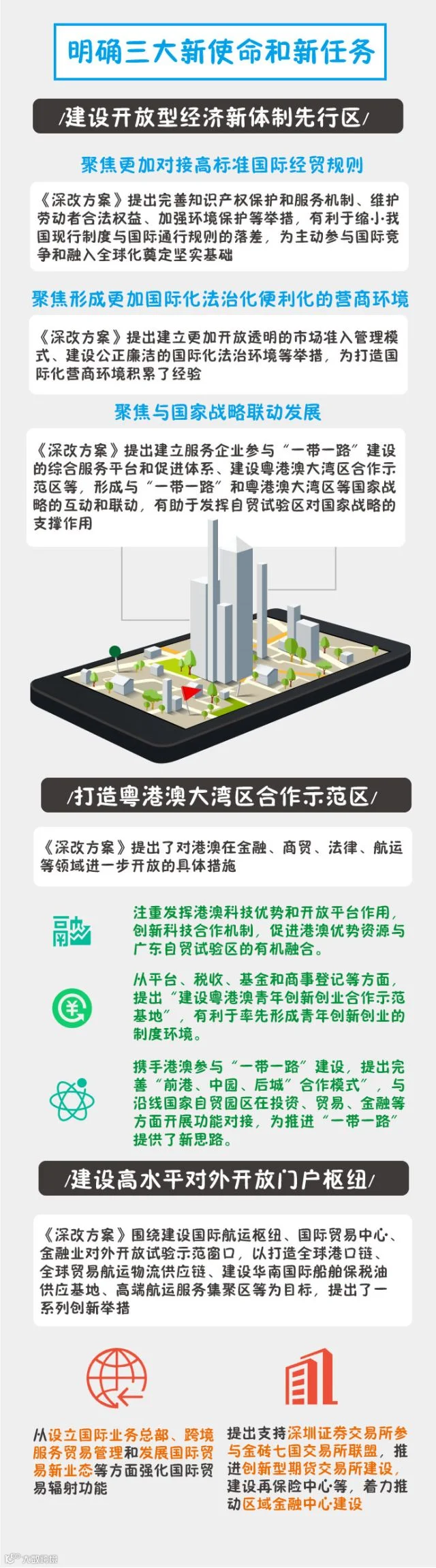 此外,《深改方案》明确了广东自贸区三大新使命和新任务,具体要点看图: