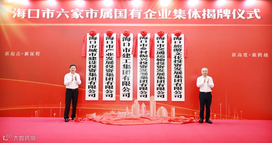 海口日报2023年10月消息,海南省海口市新组建的六家市属国有企业集体揭牌仪式举行。