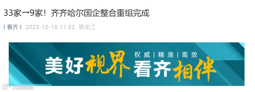 齐齐哈尔市融媒体中心2023年10月消息,日前随着黑龙江省政通大数据(集团)有限公司正式开始运营标志着齐齐哈尔市国有企业整合重组工作取得阶段性成果。