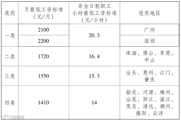 广东省企业职工最低工资标准表