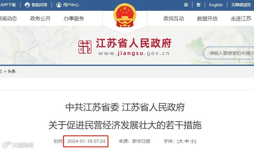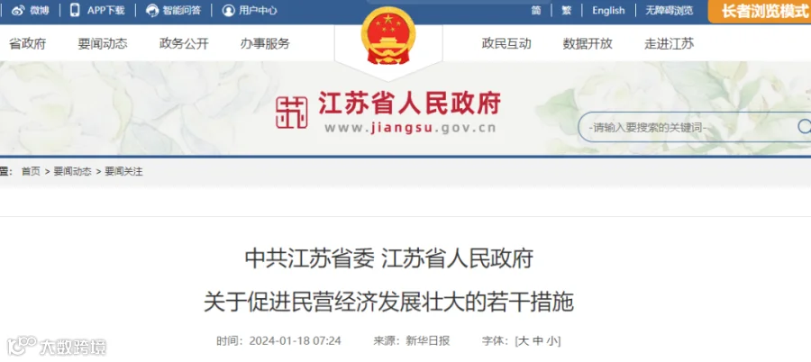 为全面贯彻落实《中共中央、国务院关于促进民营经济发展壮大的意见》,中共江苏省委 江苏省人民政府印发《关于促进民营经济发展壮大若干措施的通知》。