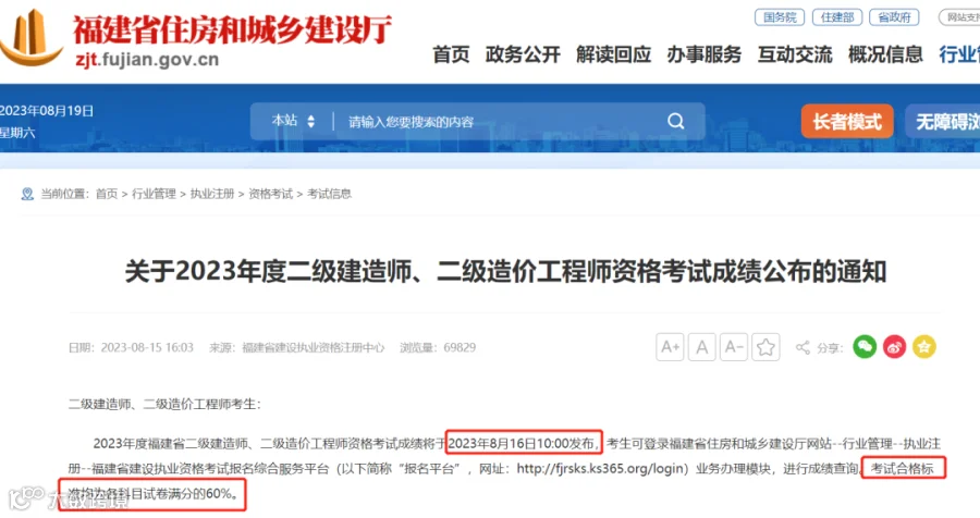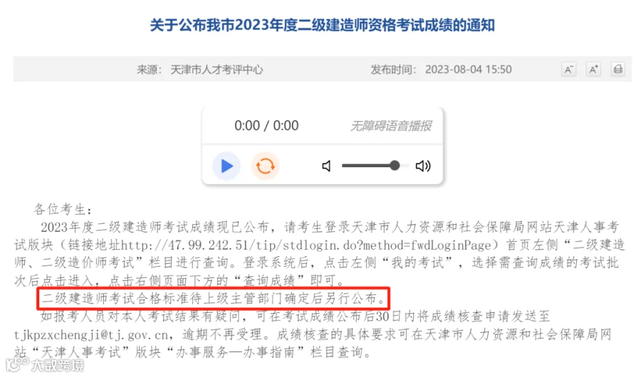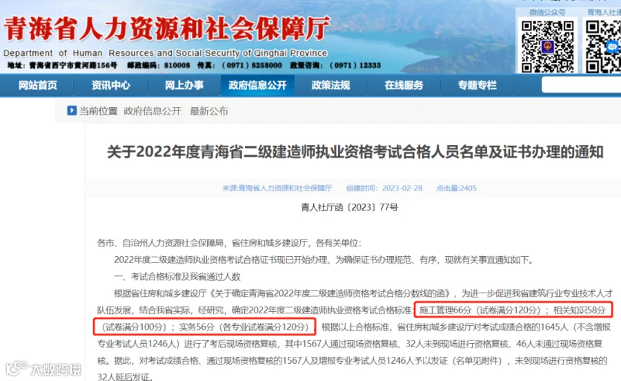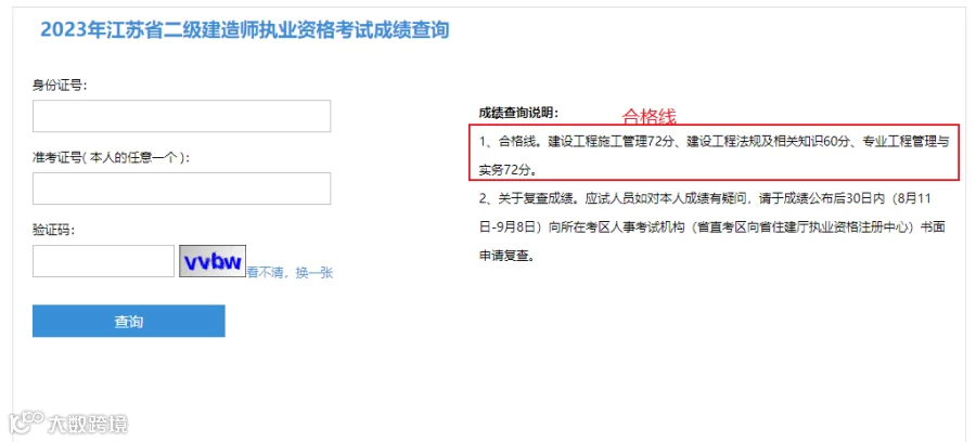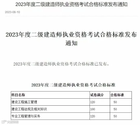 全国二级建造师2023年成绩查询、合格标准信息汇总: