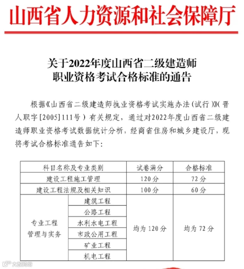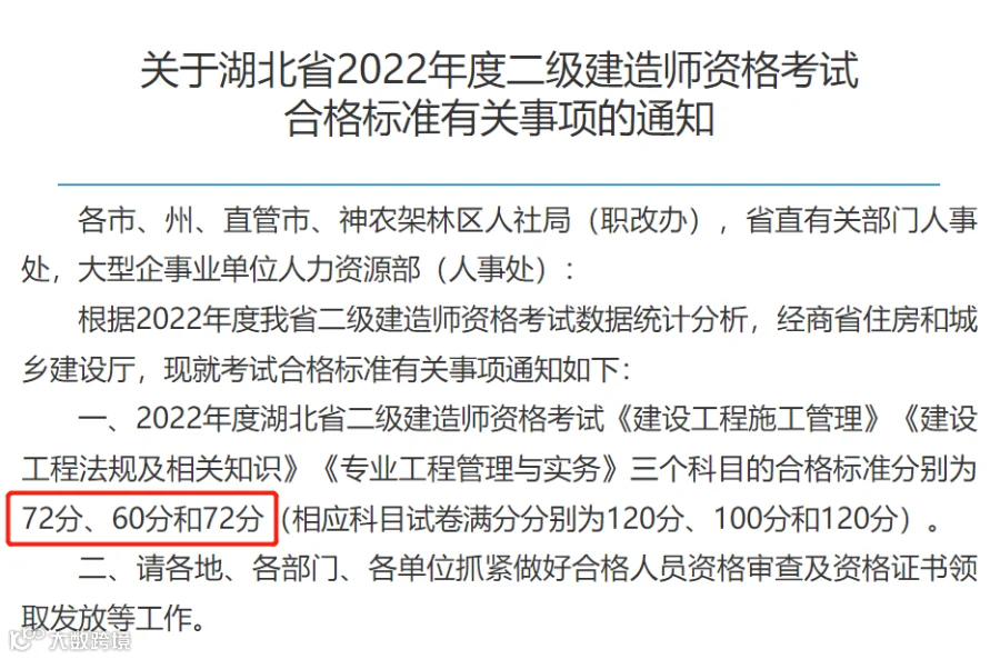 编者注:自2022年度起,江苏省二级建造师执业资格考试各科目合格标准为试卷满分的60%。