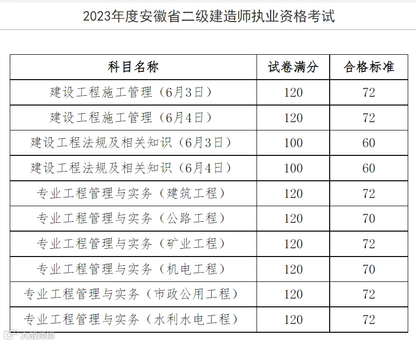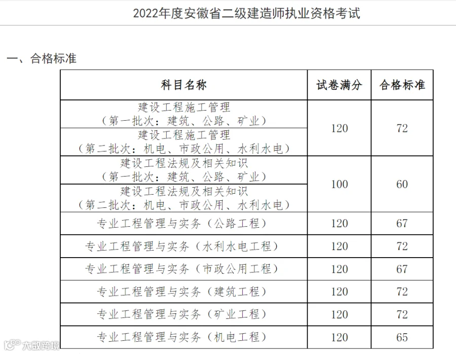 安徽省二建合格标准实务各专业不同(机电和市政上涨5分;公路上涨3分、其余不变。)