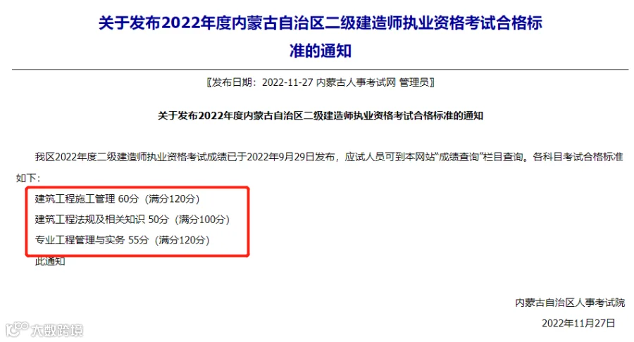 参考去年:建设工程施工管理60分、建设工程法规及相关知识55分、专业工程管理与实务55分。与21年相比,法规上涨5分。