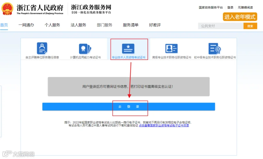 找到(专业技术人员资格考证证书),点击查询