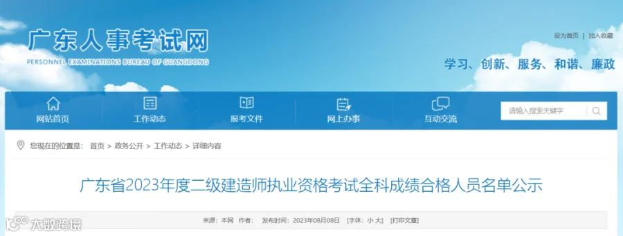 查看名单:41337人!广东省2023年度二建考试全科成绩合格人员名单公示!