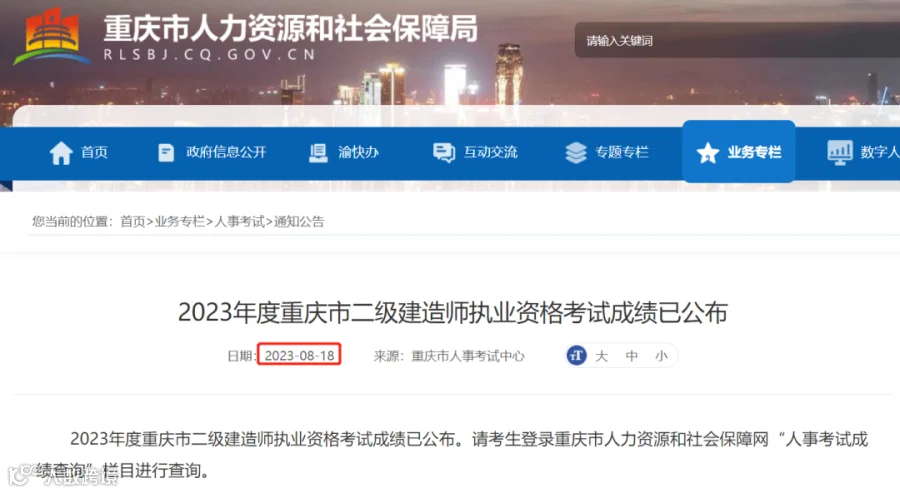① 网站名称:重庆人事考试网——成绩查询