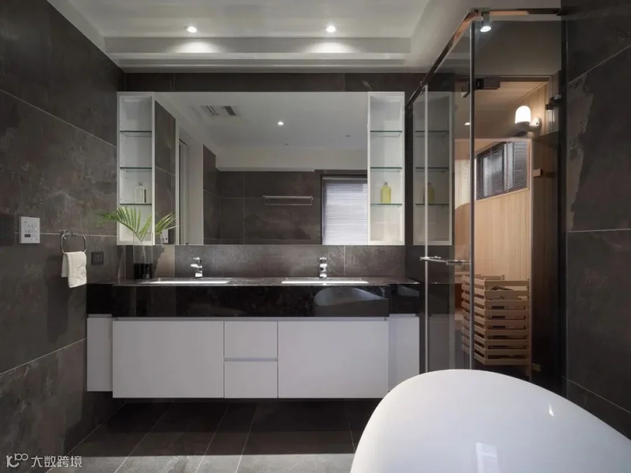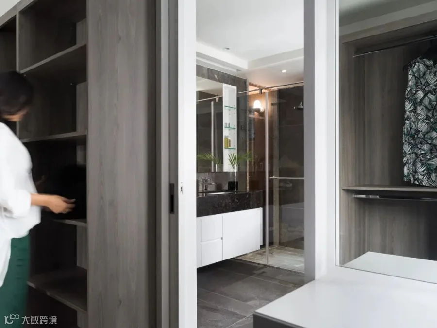 因应家主的需求,在主卧室中安排了一间桑拿房,結合玻璃拉門,讓空間開闊無阻,将渡假、休闲的机能融于一处。