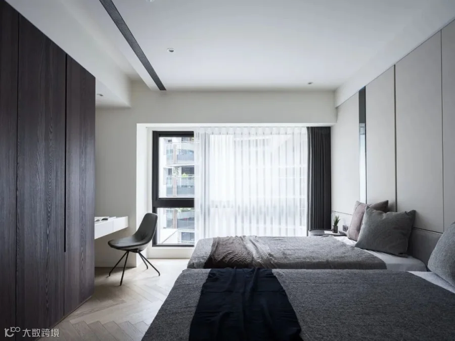 两间居室位于书房的左右两侧。善用书房区域将社交与私人空间有效区分,精心为使用者设计了属于自己的空间。