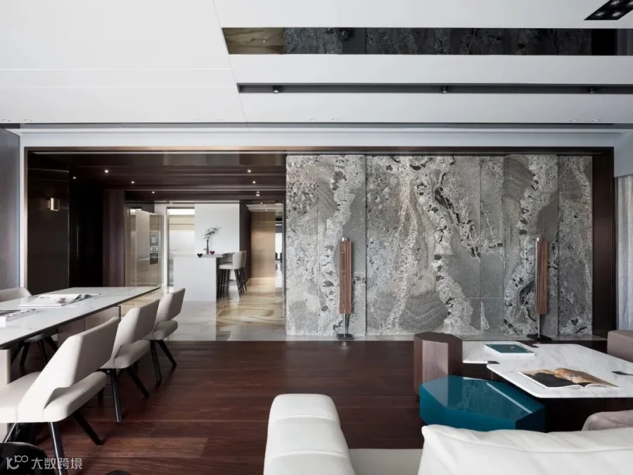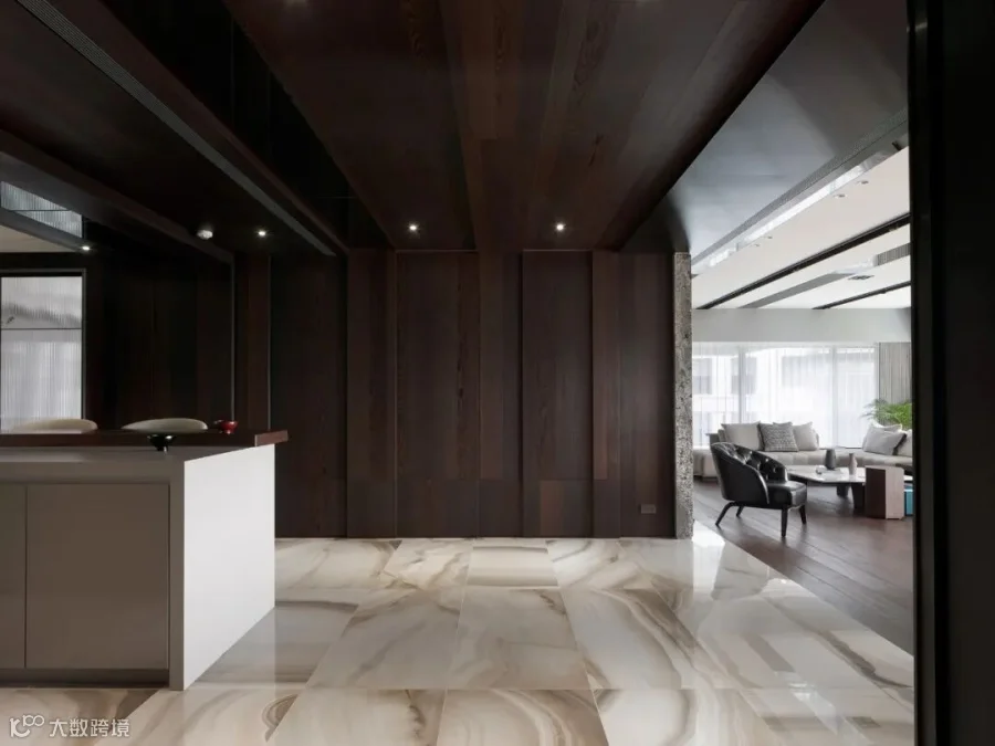 如云彩般变幻的玉石瓷砖纹理铺叙,温馨而奢华,转换木质纹理质朴氛围,通过一些变化,释放出更灵动的感受,如此精细的层次赋予场域更多可能性。