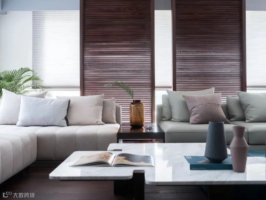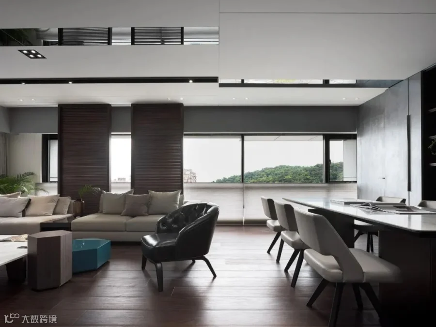 超大面积的窗扇,让阳光在空间中自由穿梭打造最适宜人居的生活环境。然而因建筑物座向之故,为了解决西晒问题,我们延续“印象马来西亚”百页、红木等元素,制作了遮阳的红木拉门,简洁的造型创造一个含蓄内敛的生活氛围,与屋主期待的渡假氛围相得益彰。