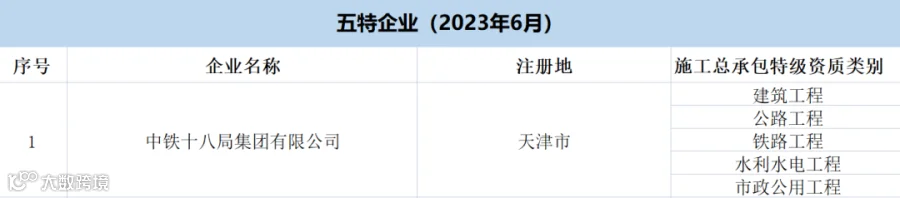 中铁十八局集团有限公司仍是唯一一家“五特”企业,另有23家“四特”企业、25家“三特”企业、72家“双特”企业。