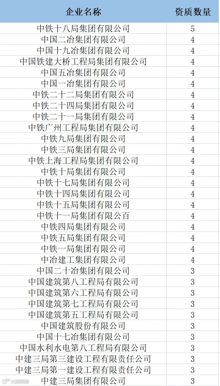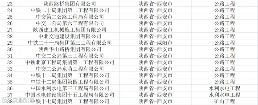 陕西:共有特级企业38家,特级资质48项(建筑工程18项、公路17项、市政7项、水利水电2项、铁路2项、矿山1项、石油化工1项)。