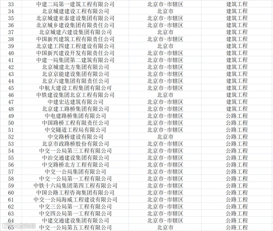下面带大家盘点一下那些拥有总承包特级资质的企业名单(以省份、市为分类,排名不分先后):