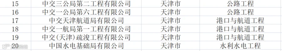 天津:共有特级企业20家,特级资质33项(建筑工程10项、公路8项、市政5项、港口与航道4项、水利水电3项、铁路2项、冶金1项)。