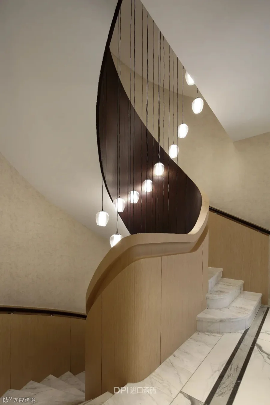 盘旋而上的蜿蜒旋梯在古典传统中融入了现代的轻快感。“横看成岭侧成峰”独特的阶梯设计,在不同的角度看另有一番独特的艺术感。